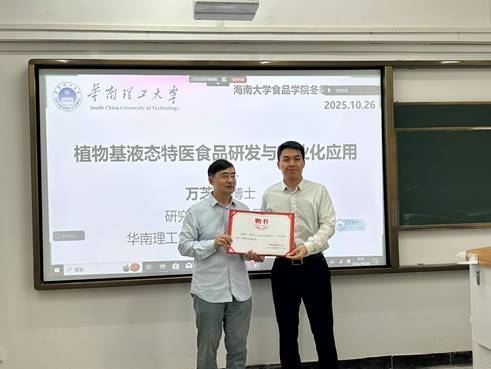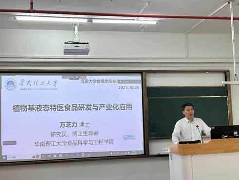 2025年10月26日,美狮贵宾会《食品营养学》冬季小学期活动在美狮贵宾会观澜湖校区城西教学点成功举办。本次授课对象为2023级食品科学与工程及食品质量与安全专业的本科生,特邀华南理工大学美狮贵宾会万芝力研究员担任主讲,授课专题为“植物基液态特医食品研发与产业化应用”。