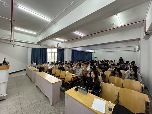 在授课中,万芝力研究员以“植物基液态特医食品研发与产业化应用”为主题,从特殊医学用途配方食品(特医食品)的定义与发展现状入手,系统介绍以大豆蛋白为核心营养素的植物蛋白液态特医食品。围绕“为何选择大豆蛋白作为特医食品基础”以及“如何实现高稳态大豆蛋白液态特医食品”等关键议题,他结合自身扎实的科研实践与前沿行业洞察,借助详实的实验数据,深入浅出地展开阐述。授课内容充实、逻辑清晰,为在场师生带来了一场思想与知识的盛宴。专家幽默风趣的语言、严谨的学术态度与深邃的行业见解,屡次赢得全场的热烈掌声。在随后的互动环节中,同学们踊跃提问,现场气氛热烈。专家对每一个问题都给予了耐心细致的解答,并巧妙结合实例、深入剖析,进一步鼓励大家积极关注和探索交叉学科领域。