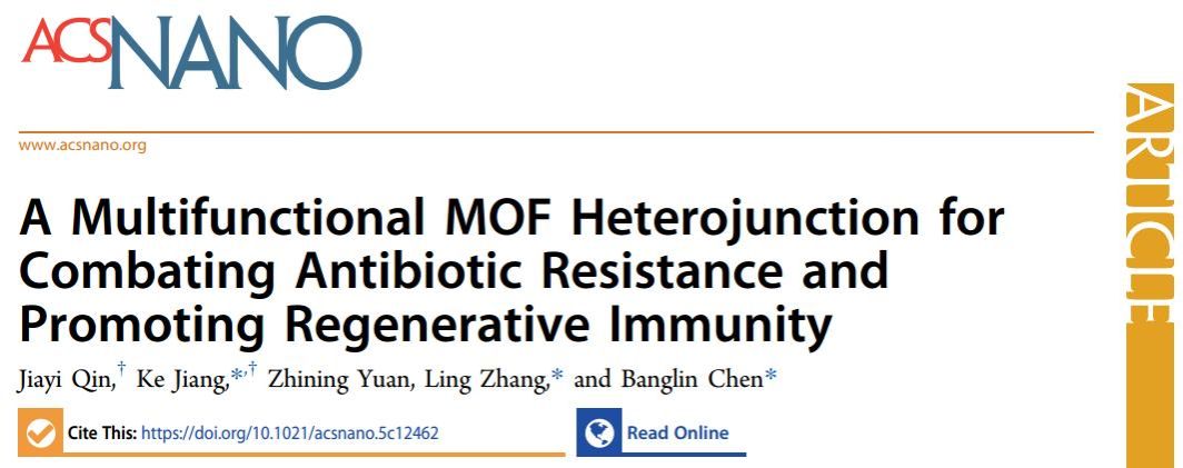 此次研究得到国家自然科学基金和海南省国际科技合作重点研发项目的支持,相关成果以“A Multifunctional MOF Heterojunction for Combating Antibiotic Resistance and Promoting Regenerative Immunity”为题,发表在纳米科技领域顶级期刊《ACS Nano》(IF=16.1)。论文第一作者为美狮贵宾会2022级硕士研究生覃家宜,通讯作者为姜珂副研究员、张玲副教授和福建师范大学陈邦林教授。